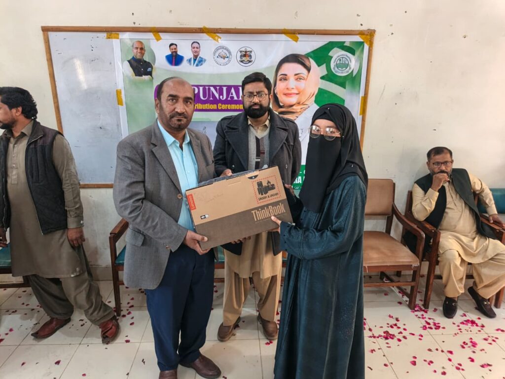 احمدپور شرقیہ (ویب ڈیسک) وزیراعلٰی پنجاب محترمہ مریم نواز شریف کے وژن اور ہائیر ایجوکیشن ڈیپارٹمنٹ کی پالیسی کے مطابق ہونہار طلباء و طالبات کے لیے بی ایس پروگرامز میں میرٹ کے تحت لیپ ٹاپ سکالرشپ کی تقسیم کی تقریب گورنمنٹ صادق عباس گریجوایٹ کالج ڈیرہ نواب صاحب میں منعقد ہوئی۔