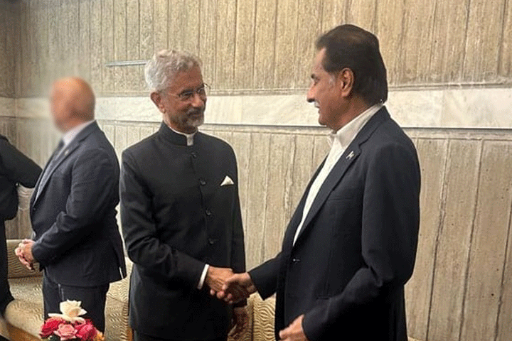 ڈھاکا (کیو این این ورلڈ) بنگلادیش کی سابق وزیراعظم خالدہ ضیا کے جنازے کے موقع پر اسپیکر قومی اسمبلی سردار ایاز صادق اور بھارتی وزیر خارجہ ایس جے شنکر کے درمیان ہونے والی غیر متوقع ملاقات اور مصافحے نے سیاسی حلقوں میں ہلچل پیدا کر دی ہے۔ ذرائع کے مطابق بھارتی وزیر خارجہ خود چل کر اسپیکر قومی اسمبلی کے پاس آئے، جہاں دونوں رہنماؤں کے درمیان خوشگوار جملوں کا تبادلہ ہوا۔ مئی میں دونوں ممالک کے درمیان ہونے والی حالیہ جنگ کے بعد یہ پہلا موقع ہے کہ اعلیٰ سطح پر کوئی سفارتی رابطہ ہوا ہے، جسے کشیدگی کے خاتمے کی جانب ایک اہم پیش رفت کے طور پر دیکھا جا رہا ہے۔