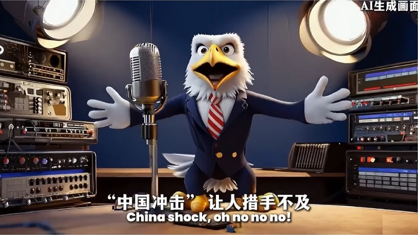 ویڈیو میں امریکا کو ایک سوٹ پہنے ہوئے گنجا عقاب (Bald Eagle) کے روپ میں دکھایا گیا ہے، جو مائیک کے سامنے کھڑے ہو کر ڈرامائی انداز میں گاتا اور چیختا ہے، جبکہ چین کو ایک محنتی پانڈا (Panda) کی صورت میں پیش کیا گیا ہے جو کوڈنگ کرتا، الیکٹرک گاڑیوں کی اسمبلی لائن دیکھتا، سولر پینلز پر فوٹو وولٹک سیلز لگاتا، انسانی روبوٹس کے ساتھ موسیقی بجاتا اور راکٹ لانچ کا مشاہدہ کرتا دکھائی دیتا ہے۔