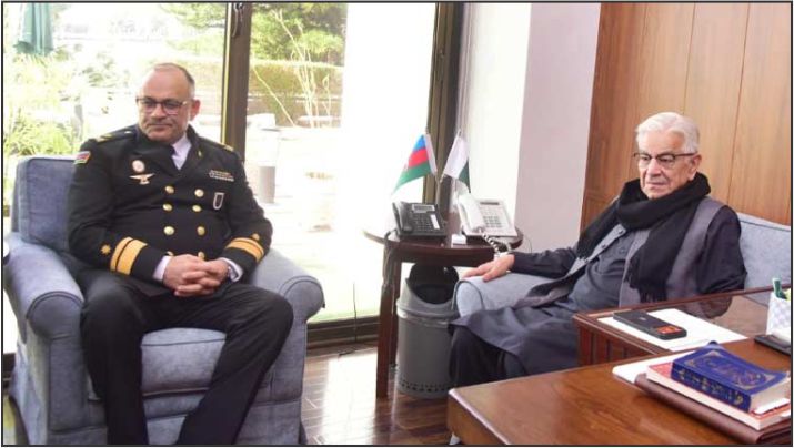 اسلام آباد (کیو این این ورلڈ) وزیرِ دفاع خواجہ محمد آصف سے آذربائیجان نیول فورسز کے کمانڈر ریئر ایڈمرل شاہین محمدوف نے ملاقات کی، جس میں دونوں ممالک کے درمیان قریبی اور برادرانہ تعلقات کا اعادہ کیا گیا۔