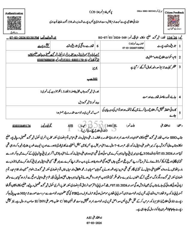 پولیس حکام کا کہنا ہے کہ ملزم کی تلاش کے لیے مختلف مقامات پر چھاپے مارے جا رہے ہیں اور اسے جلد گرفتار کر لیا جائے گا۔ علاقے میں اس لرزہ خیز واقعے کے بعد شدید خوف و ہراس اور غم کی لہر دوڑ گئی ہے۔