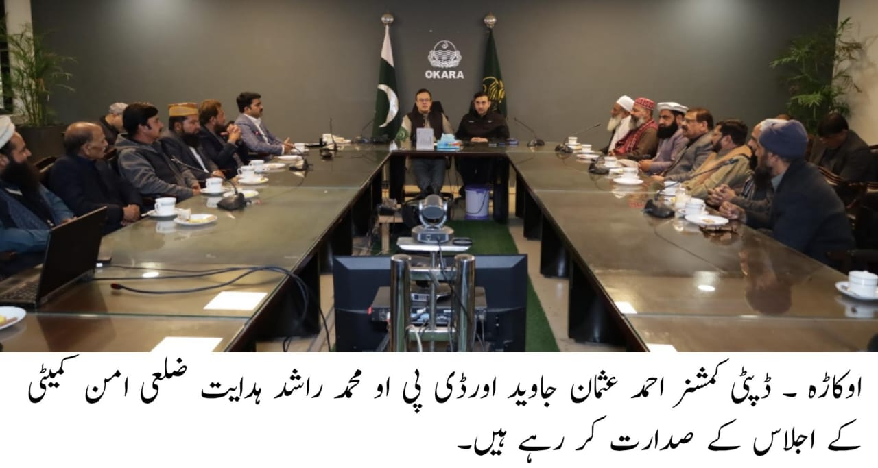 اوکاڑہ (نامہ نگار ملک ظفر) ڈپٹی کمشنر احمد عثمان جاوید اور ڈی پی او محمد راشد ہدایت کی زیر صدارت ضلعی امن کمیٹی کا ایک اہم اجلاس منعقد ہوا، جس میں ایڈیشنل ڈپٹی کمشنر جنرل احمد سلیم چشتی سمیت تمام مسالک کے جید علماء کرام اور امن کمیٹی کے ممبران نے بھرپور شرکت کی۔ اجلاس کے دوران یومِ قائد اعظم، کرسمس ڈے اور نئے سال کی آمد کے موقع پر امن و امان کی صورتحال کو برقرار رکھنے اور مذہبی رواداری و بھائی چارے کے فروغ کے لیے مشترکہ کاوشوں پر زور دیا گیا۔ ڈپٹی کمشنر احمد عثمان جاوید نے علمائے کرام کی خدمات کو سراہتے ہوئے کہا کہ تمام مکاتبِ فکر نے سال بھر ہر اہم موقع اور تہوار پر مثالی امن و امان برقرار رکھنے میں انتظامیہ کا ساتھ دیا ہے، جس کی بدولت تمام معاملات خیر و عافیت سے انجام پائے۔ انہوں نے خبردار کیا کہ ملک دشمن عناصر شرپسندی اور تخریب کاری کے ذریعے امن کو غارت کرنا چاہتے ہیں، لیکن باہمی اتحاد اور مضبوط رابطے کی پالیسی کے ذریعے ان کے مذموم مقاصد کو کبھی کامیاب نہیں ہونے دیا جائے گا۔