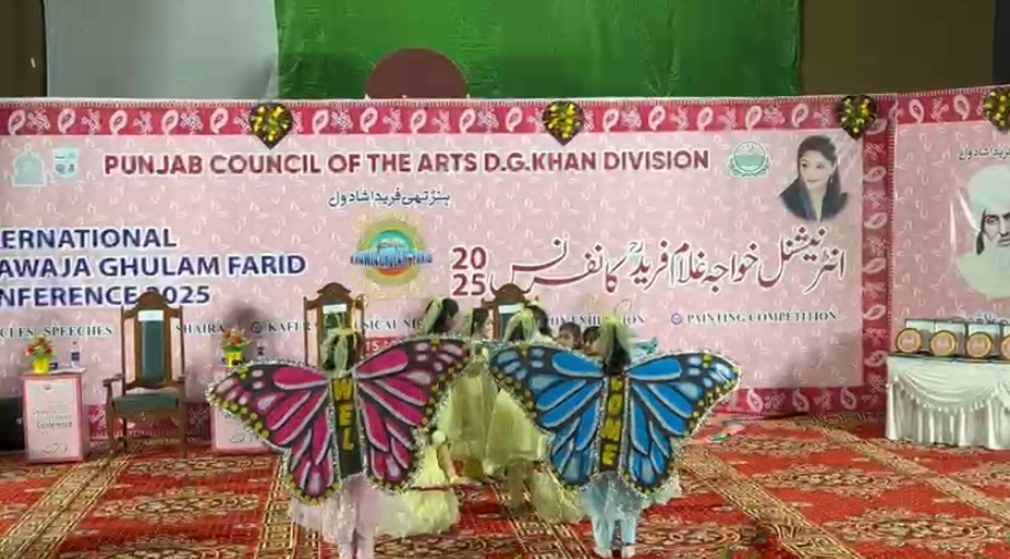 ڈیرہ غازی خان (نامہ نگار)ڈیرہ غازی خان میں تین روزہ انٹرنیشنل خواجہ غلام فرید کانفرنس 2025 کا باقاعدہ آغاز ہو گیا۔ کانفرنس کا انعقاد محکمہ اطلاعات و ثقافت پنجاب اور پنجاب کونسل آف دی آرٹس کے اشتراک سے کیا گیا، جس میں غازی یونیورسٹی نے علمی و ادبی سرگرمیوں میں بھرپور شرکت کی۔