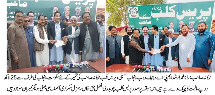 رانا محمد ارشد نے تقریب سے خطاب کرتے ہوئے کہا کہ یہ گرانٹ صدر پریس کلب اور نائب صدر چوہدری محمد ریاض کی مسلسل کاوشوں اور رابطوں کا نتیجہ ہے۔ انہوں نے واضح کیا کہ ننکانہ صاحب بابا گورو نانک کی جائے پیدائش ہونے کی وجہ سے عالمی سطح پر پہچانا جاتا ہے جہاں دنیا بھر سے سکھ یاتری اور غیر ملکی صحافی آتے ہیں، اس لیے یہاں ایک جدید اور معیاری پریس کلب کی تعمیر وقت کی اہم ضرورت تھی۔