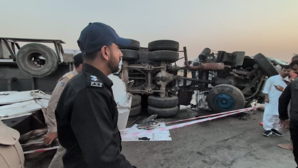 وزیر داخلہ سندھ ضیاء الحسن لنجار نے حادثے پر گہرے دکھ اور افسوس کا اظہار کرتے ہوئے جاں بحق افراد کے لواحقین سے دلی ہمدردی کا اظہار کیا ہے۔ انہوں نے متعلقہ حکام کو ہدایت کی کہ زخمیوں کو بہترین طبی سہولیات فراہم کی جائیں اور امدادی سرگرمیوں میں کوئی کسر اٹھا نہ رکھی جائے۔ وزیر داخلہ نے بتایا کہ ایس ایس پی ملیر نے 13 ہلاکتوں کی تصدیق کر دی ہے اور پولیس کی بھاری نفری صورتحال کو کنٹرول کرنے کے لیے موقع پر موجود ہے۔ ریسکیو آپریشن کے دوران ایمبولینسز کی بلا تعطل رسائی کے لیے شاہراہ کو کلیئر کروا دیا گیا ہے۔