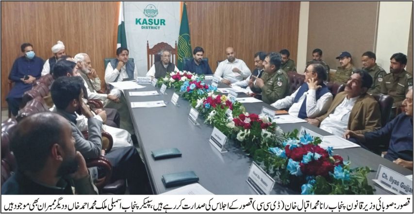 تفصیلات کے مطابق ڈپٹی کمشنر قصور محمد آصف رضا نے ضلع کی انتظامی کارکردگی اور ترقیاتی منصوبوں پر بریفنگ دی، جبکہ ڈی پی او محمد عیسیٰ خان نے امن و امان کی صورتحال اور جرائم کے انسداد کے حوالے سے اقدامات سے آگاہ کیا۔ اجلاس میں سی ای او ہیلتھ اور سی ای او ایجوکیشن نے اپنے اپنے محکموں کی کارکردگی اور عوامی سہولیات کی فراہمی پر رپورٹ پیش کی۔ پنجاب خوشحال پروگرام کے تحت جاری سڑکوں کی تعمیر و بحالی کے منصوبوں کا بھی جائزہ لیا گیا اور متعلقہ افسران نے تعمیراتی پیش رفت پر بریفنگ دی۔