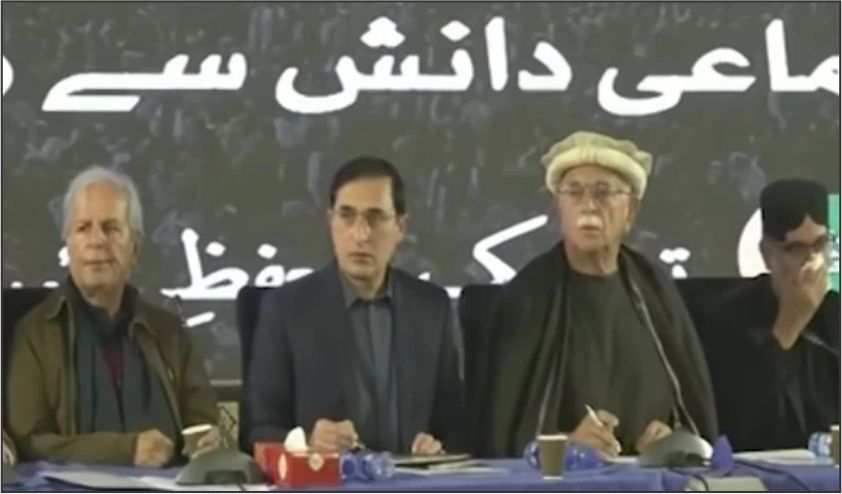 اسد قیصر نے کہا کہ اب احتجاج اور مزاحمت کے سوا کوئی آپشن نہیں بچا اور انصاف کے حصول کے لیے عوام کو سڑکوں پر آنا ہوگا۔ جماعت اسلامی کے رہنما لیاقت بلوچ نے غیر جانبدار انتخابات، آئین کے تحفظ اور بدنیتی سے کی گئی آئینی ترامیم کی واپسی کا مطالبہ کیا۔