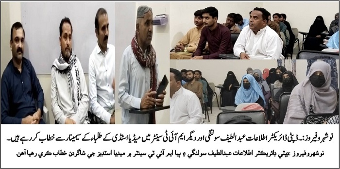 نوشہروفیروز (کیو این این ورلڈ/ساجد مغل کی رپورٹ) ڈپٹی ڈائریکٹر انفارمیشن نوشہروفیروز عبداللطیف سولنگی نے کہا ہے کہ صحافت کے ذیلی شعبہ جات بشمول ڈاکومنٹری، فلم میکنگ اور ڈیجیٹل براڈکاسٹنگ کے طلبہ وطنِ عزیز کی ترقی میں تعمیری کردار ادا کر سکتے ہیں۔ ان خیالات کا اظہار انہوں نے ماڈرن انسٹیٹیوٹ آف اسکل ڈیولپمنٹ سینٹر (MIT) نوشہروفیروز میں نیشنل ووکیشنل ٹیکنیکل ٹریننگ کمیشن (NAVTTC) کے تحت جاری پرائمنسٹر یوتھ ٹریننگ اسکیم کے طلبہ سے خصوصی خطاب کرتے ہوئے کیا۔ انہوں نے زور دیا کہ جدید دور میں پرنٹ اور الیکٹرانک میڈیا کے ساتھ ساتھ ڈیجیٹل میڈیا کی اہمیت بڑھ رہی ہے، لہٰذا نوجوانوں کو چاہیے کہ وہ نفرت انگیز مواد سے بچتے ہوئے مثبت سوچ کو فروغ دیں۔