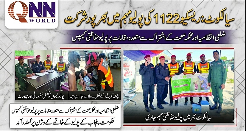 سیالکوٹ (کیو این این ورلڈ/ڈسٹرکٹ رپورٹر حسنین راجہ) ملک بھر میں جاری 5 روزہ پولیو مہم کے دوران سیالکوٹ میں ریسکیو 1122 کے ریسکیورز اور ریسکیو اسکاؤٹس بھی ضلع انتظامیہ کے ساتھ مل کر بھرپور حصہ لے رہے ہیں۔