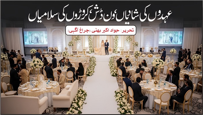 رہا سہا تضاد ون ڈش قانون کی کھلم کھلا خلاف ورزی ہے۔ سیاستدان، افسر، قانون دان اور قانون نافذ کرنے والے اداروں کے نمائندے ایک ہی شادی میں موجود ہوتے ہیں، جہاں درجنوں ڈشز کے ذریعے قانون کی حیثیت اور طاقت کا فرق دکھایا جاتا ہے۔ سوال یہ نہیں کہ قانون کیوں ٹوٹتا ہے، سوال یہ ہے کہ قانون توڑنے والوں کو قانون یاد دلانے والا کون ہے؟ جب اقتدار کے ایوانوں میں بیٹھے لوگ شادیوں کو کمائی کا ذریعہ اور قانون کو تماشا بنا دیں، تو عام آدمی کس سے انصاف کی امید رکھے؟ شادی خوشی، سادگی اور برکت کا نام ہے، کمائی، نمائش اور طاقت کے اظہار کا نہیں۔ شاید وقت آ گیا ہے کہ ہم شادی کو پھر سے وہی مقدس رشتہ بنا دیں، جو کبھی ہوا کرتا تھا۔